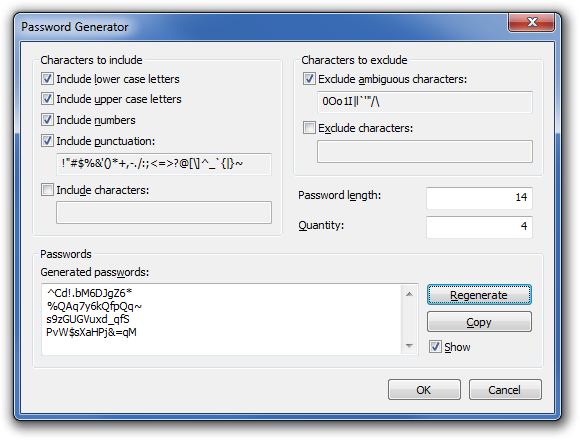This screenshot shows the password generator dialog.