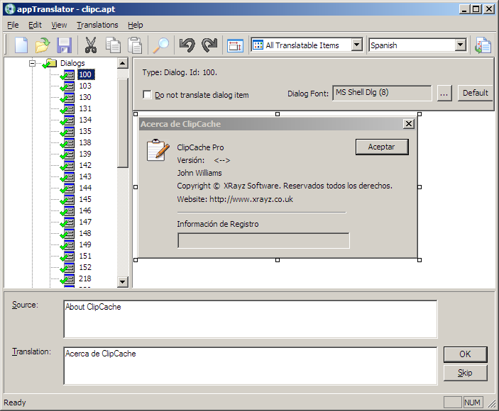 - Translating the user interface is done visually, you edit the dialog boxes using a program that we provide, see the screenshot below